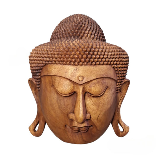 Escultura Face Buda Decorativo Madeira Máscara Parede 50cm