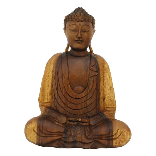 Estátua Buda Decorativo Madeira Decoração Escultura - 43cm Marrom Madeira Natural