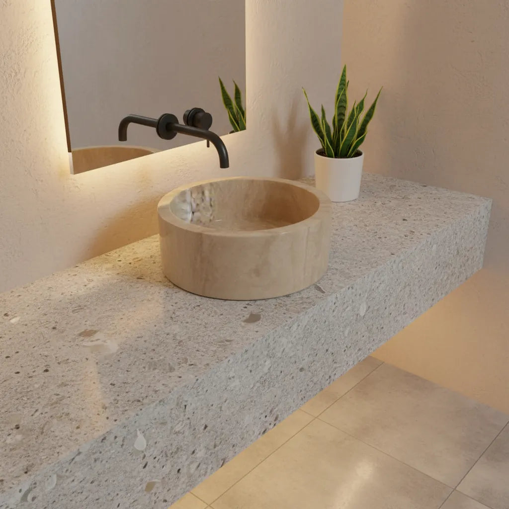 -Esculpida em pedra natural Ônix, com origem sendo do sudeste asiático, sua matéria prima é encontrada apenas na Indonésia, bem como os artistas que esculpem estas incríveis cubas para banheiro ou lavabo.