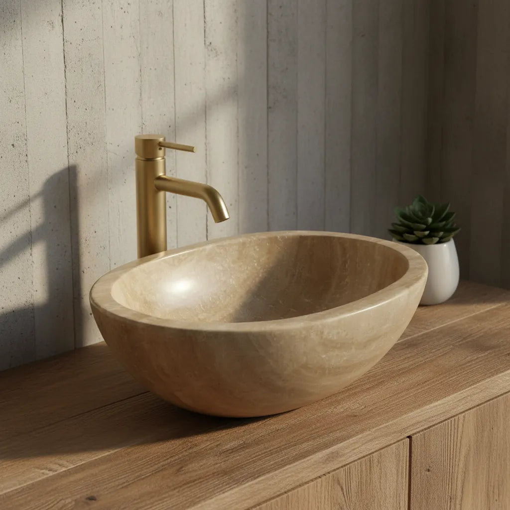 -Esculpida em pedra natural Ônix, com origem sendo do sudeste asiático, sua matéria prima é encontrada apenas na Indonésia, bem como os artistas que esculpem estas incríveis cubas para banheiro ou lavabo.