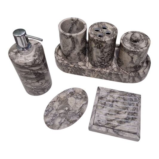 Kit Banheiro Lavabo Dispenser Saboneteira Mármore Vulcânico
